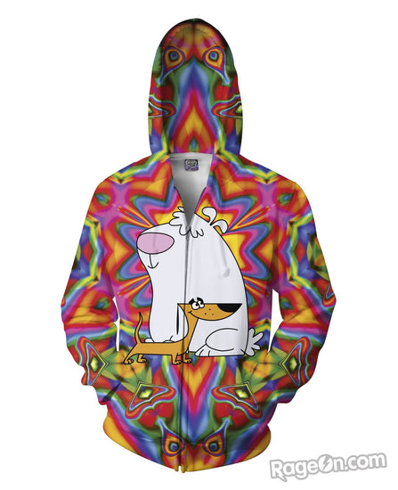 2 Stupid Dogs is the american cartoon series shown on Cartoon Network and Boomerang that introduced us to the misadventures of Little Dog and Big Dog! Get your all-over print 2 Stupid Dogs Zip-up Hoodie from Totally 90s!