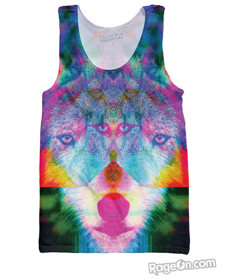 This all-over print Wonder Wolf Tank Top is designed by Larry Carlson! This tank features a beautiful wolf in a psychedelic colorful look. You'll look trippy while you howl at the moon against the night sky!! Only at RageOn!!!